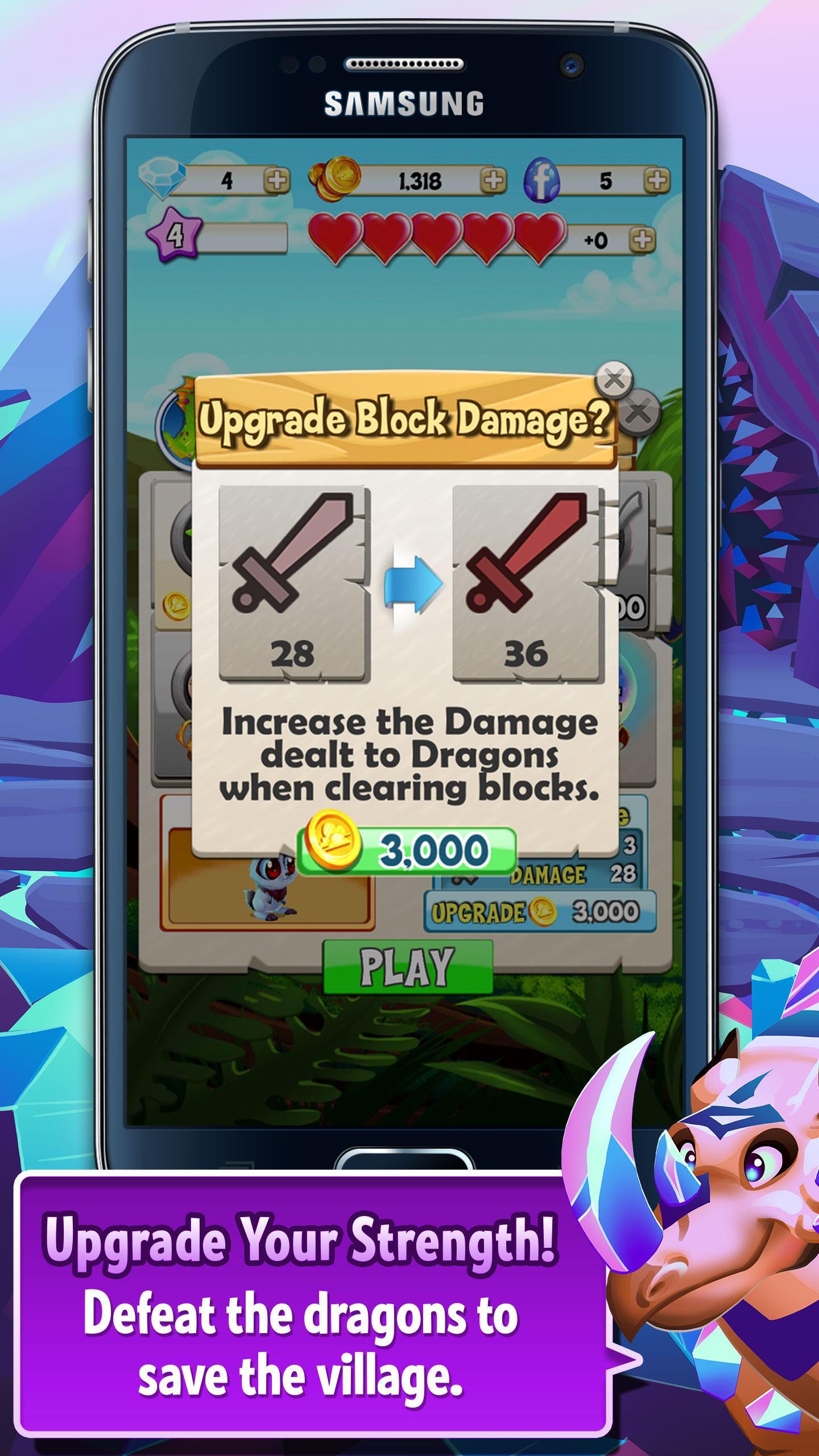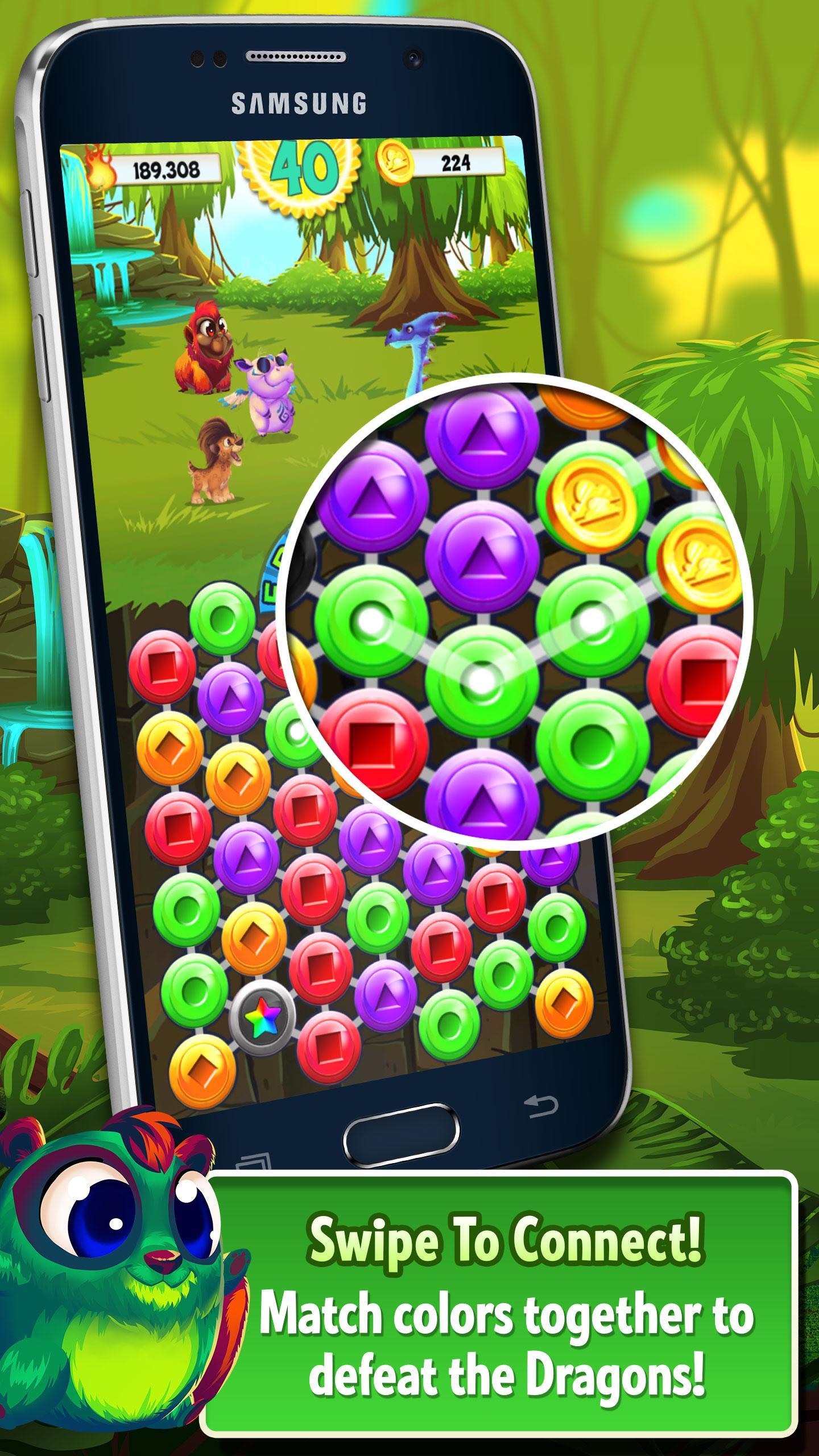Courez contre l'horloge dans un blitz de 60 secondes pour se connecter et clarifier autant de blocs que possible avant que le temps ne s'épuise! C'est super rapide, hyper-addicatif et méga-excitant! Connectez simplement trois blocs ou plus pour les faire exploser du conseil d'administration pour attaquer les Dragons maléfiques et envoyer votre score en flèche!