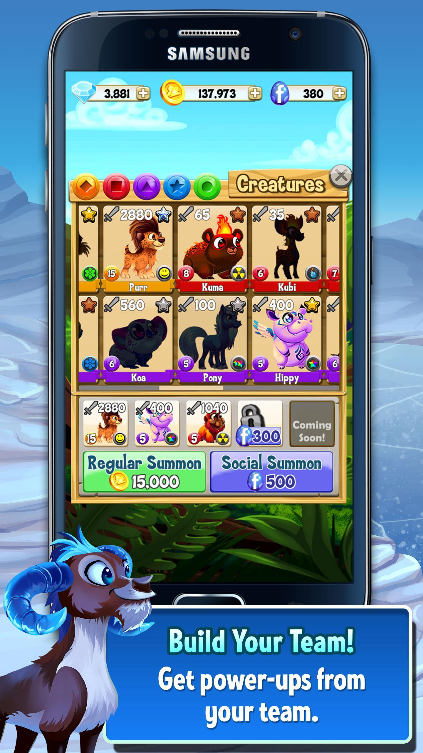 Collectez et construisez votre équipe de créature pour utiliser leurs pouvoirs, il n'y a pratiquement aucune limite au nombre de combinaisons d'équipe que vous pouvez essayer de devenir les meilleures. Essayez de les récupérer tous!