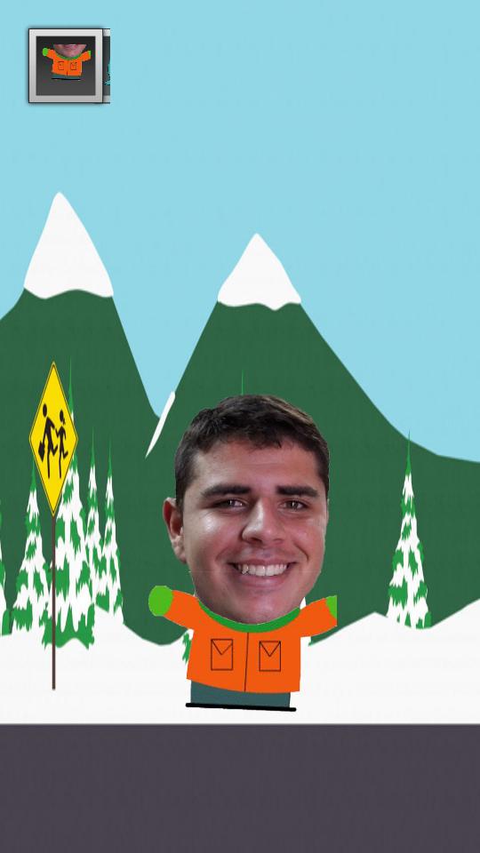 Application simple pour South Park vous-même. Cette version n'a qu'un seul visage. Bientôt, vous pourrez prendre n'importe quelle photo et changer le visage. De plus, pour la prochaine construction, vous pourrez parler au personnage et cela vous racontera d'une voix drôle.