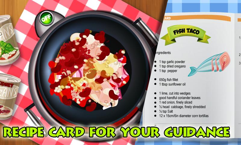 Téléchargez maintenant et commencez à cuisiner vos tacos, nachos et burritos préférés dans ces jeux de tacos et partagez-le avec des amis et de la famille avec une délicieuse salade de chou.