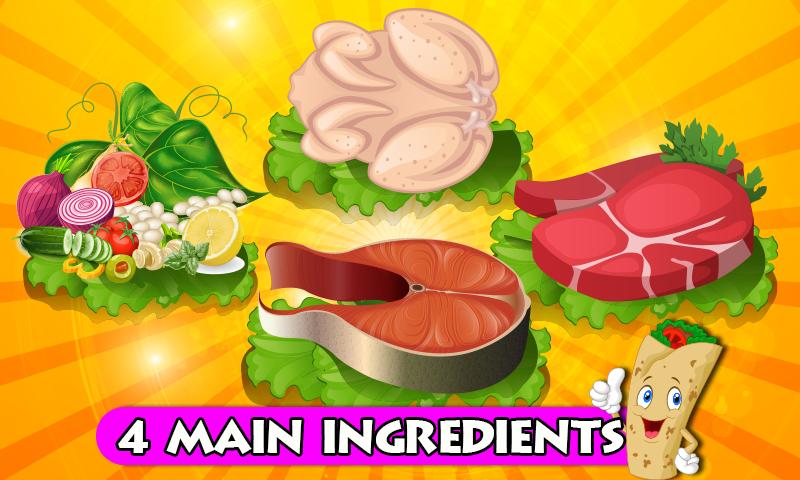 • Girms gratuits et simples, gibier pour enfants pour cuisiner Shawarma, Doner, Gyros et Shaurma.