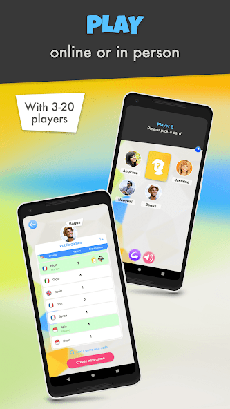 1. Mode hors ligne: tout le monde joue sur le même téléphone. Les joueurs doivent être physiquement ensemble.