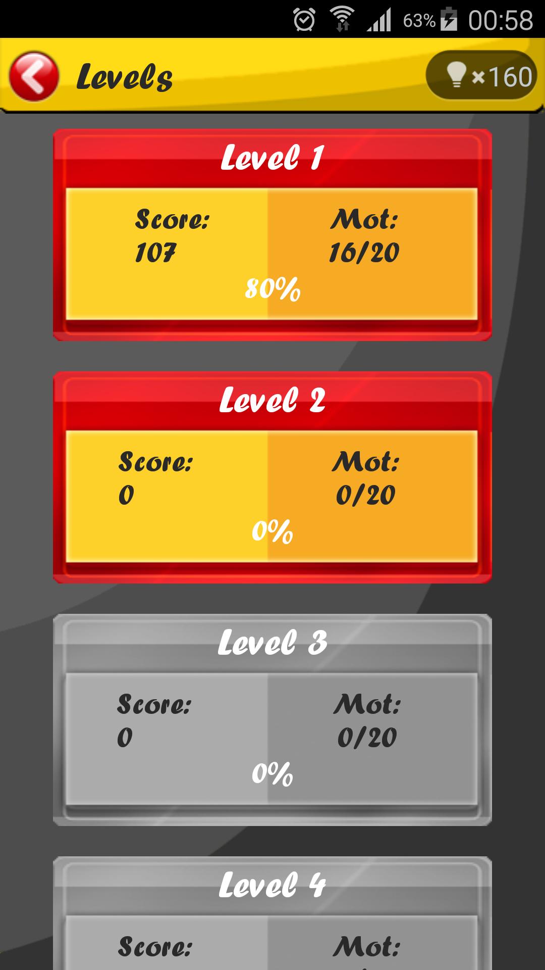 4 - The player reaches the next level after answering correctly 50% of the questions.