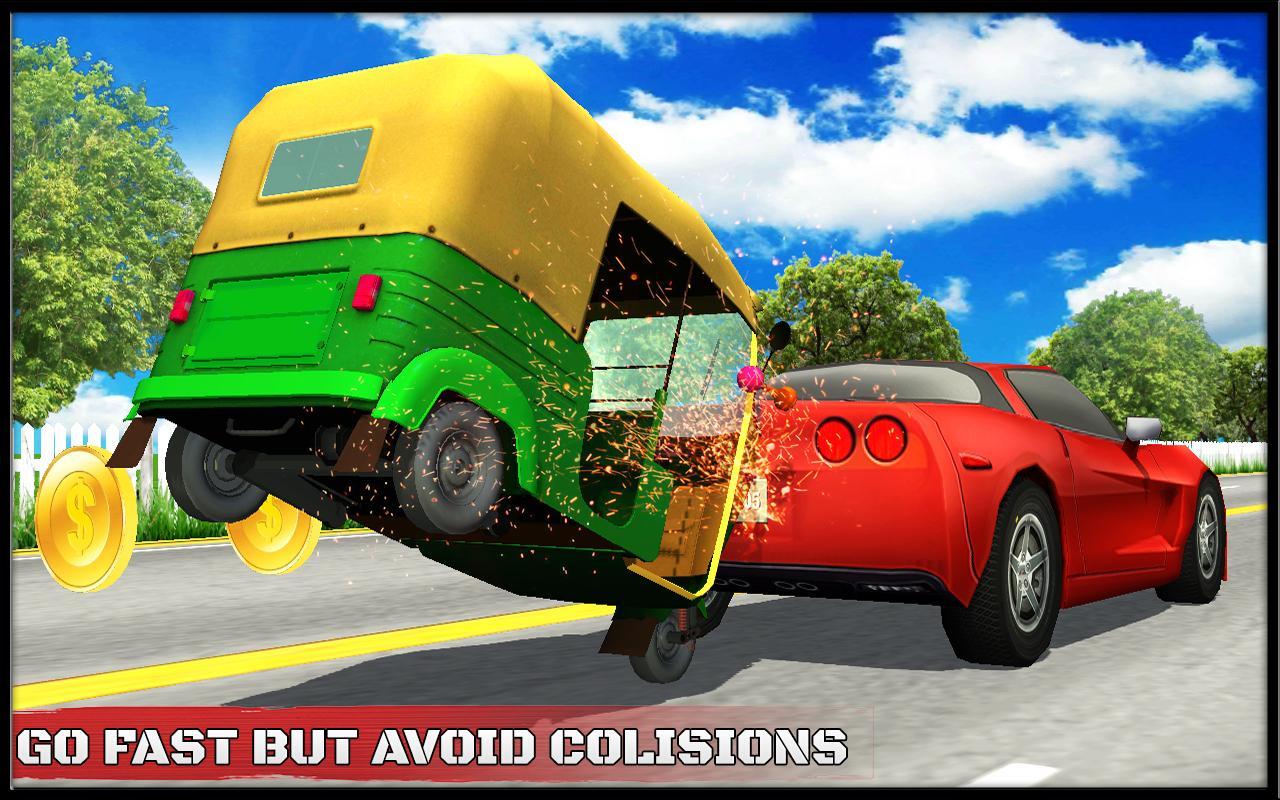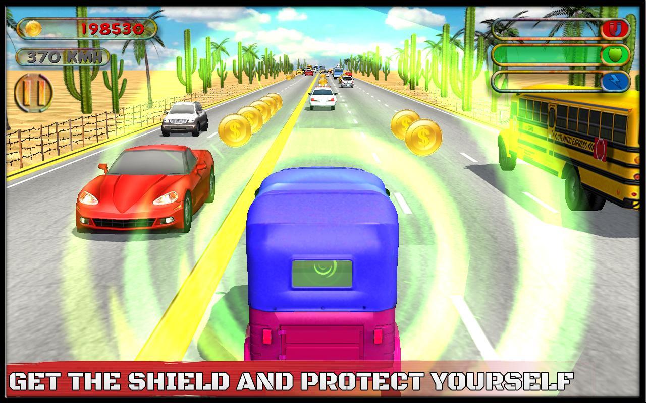 Endless traffic rickshaw racing is a high quality graphics game with a smooth control.
