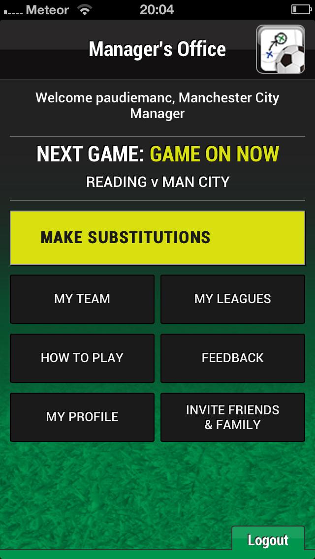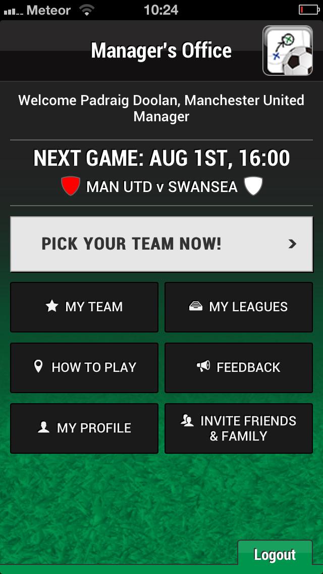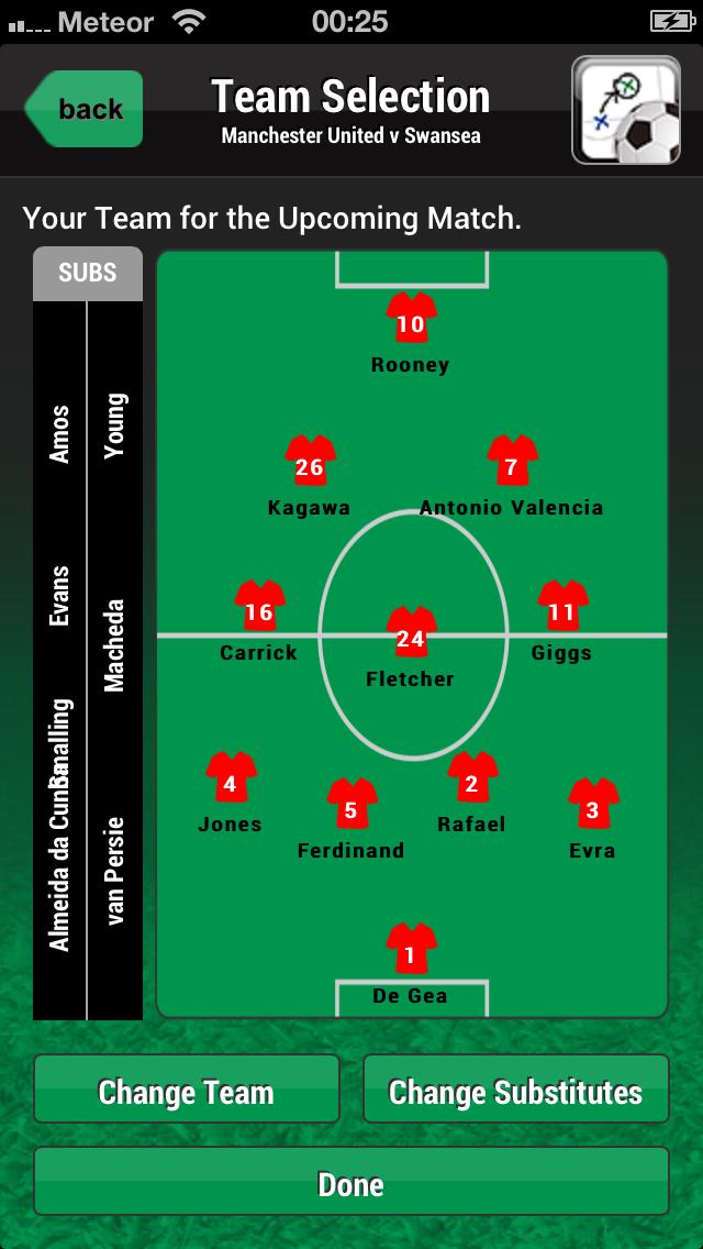 Manage your favourite Premier League Club live! Pick lineup, subs, formation