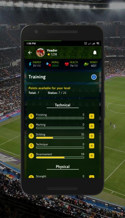 Over time the achievements should come and you can become the great star of the football country. While this does not happen you will need to grate daily, spend energy on other jobs to make your dream come true.