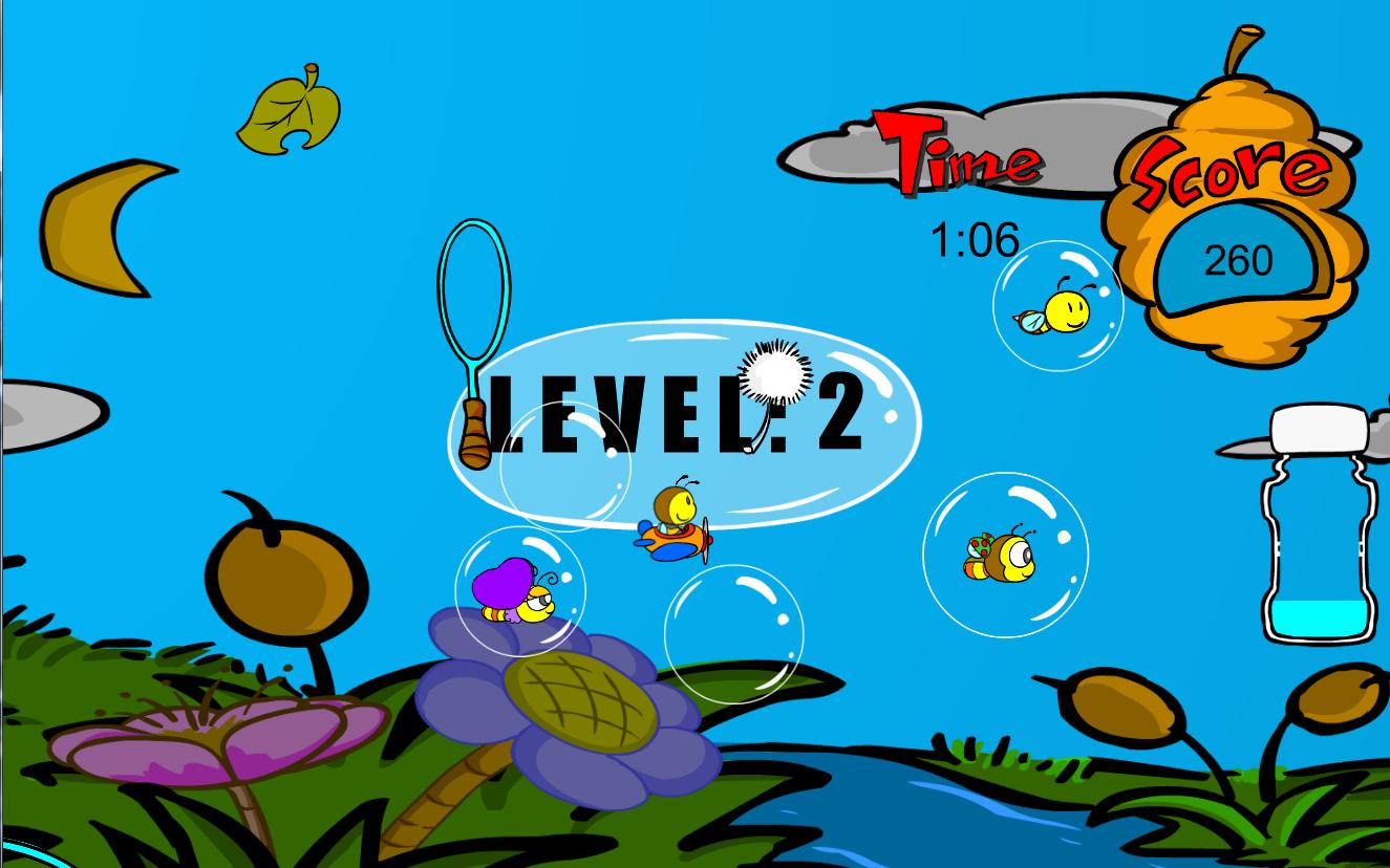 Tap and drag with the bubble wand to blow a bubble around a bug. The more bugs you capture in a bubble the more points you get. Get more time by capturing clocks and get more bubble juice when you capture a bubble bottle. Have fun!