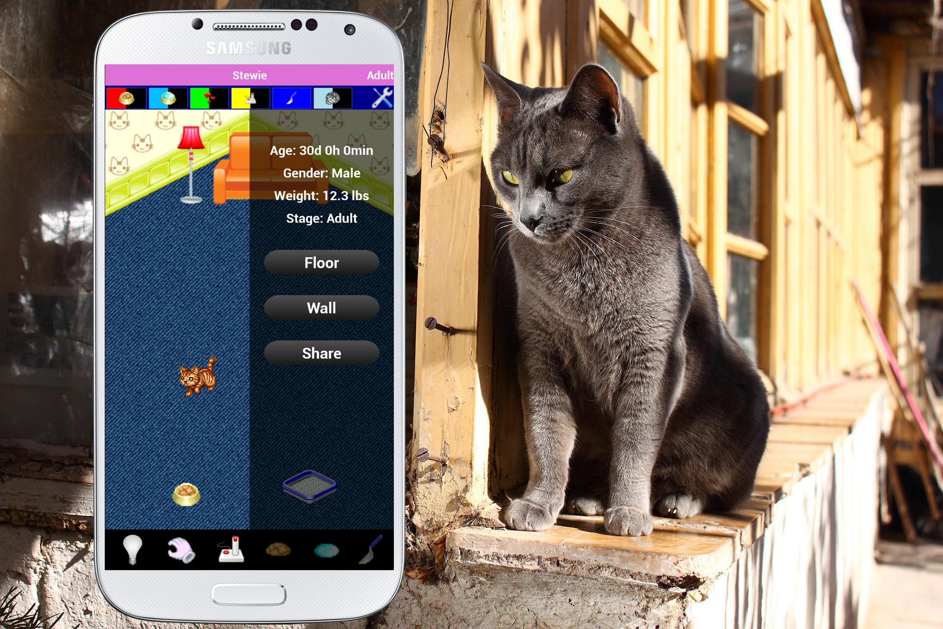 In this virtual animal game you don't have to earn coins like in other animal games and will not bother you with notifications from your pet health. All you have to do is to look at your cat from time to time and take care of your virtual friend to keep your kitten alive.
