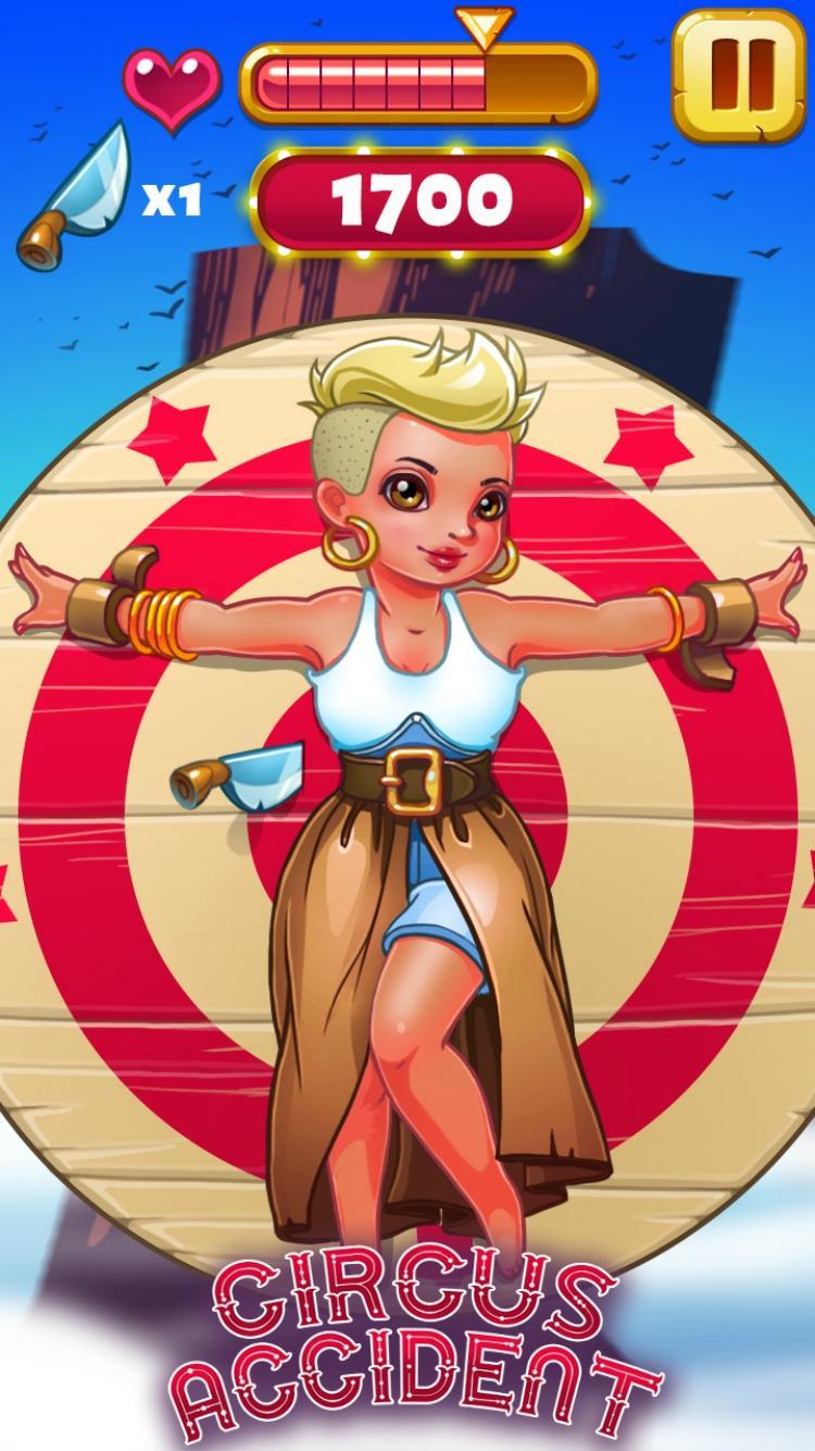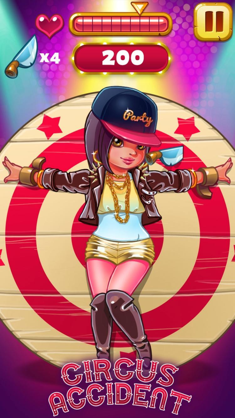 Circus Accident – knives throwing simulator game at moving target. Tap on the screen and throw the knife to hit your target. And.....undress the sexy girl.