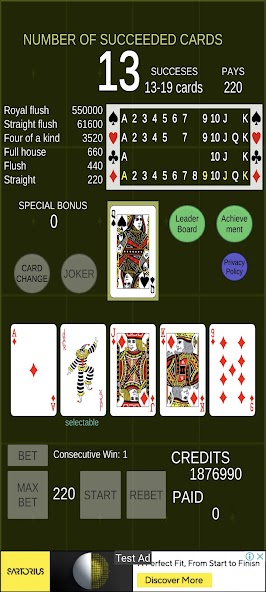 The operation is very easy. Touch and collect the same number or the same type as the previous card. The more you connect the more cards, the higher your dividend will be. Let's aim for a high score with a large bet of multiplying it.