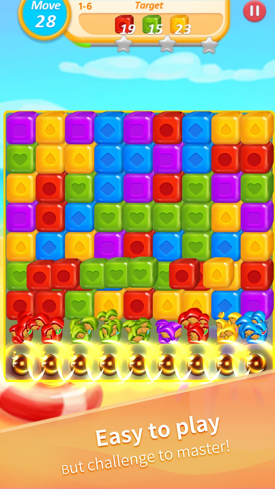 Your target in the game is to blast the blocks and solve the level puzzle, the more blocks you pop the better boosters you will get that will help to to solve the puzzle and bring down all the cubes to blast.