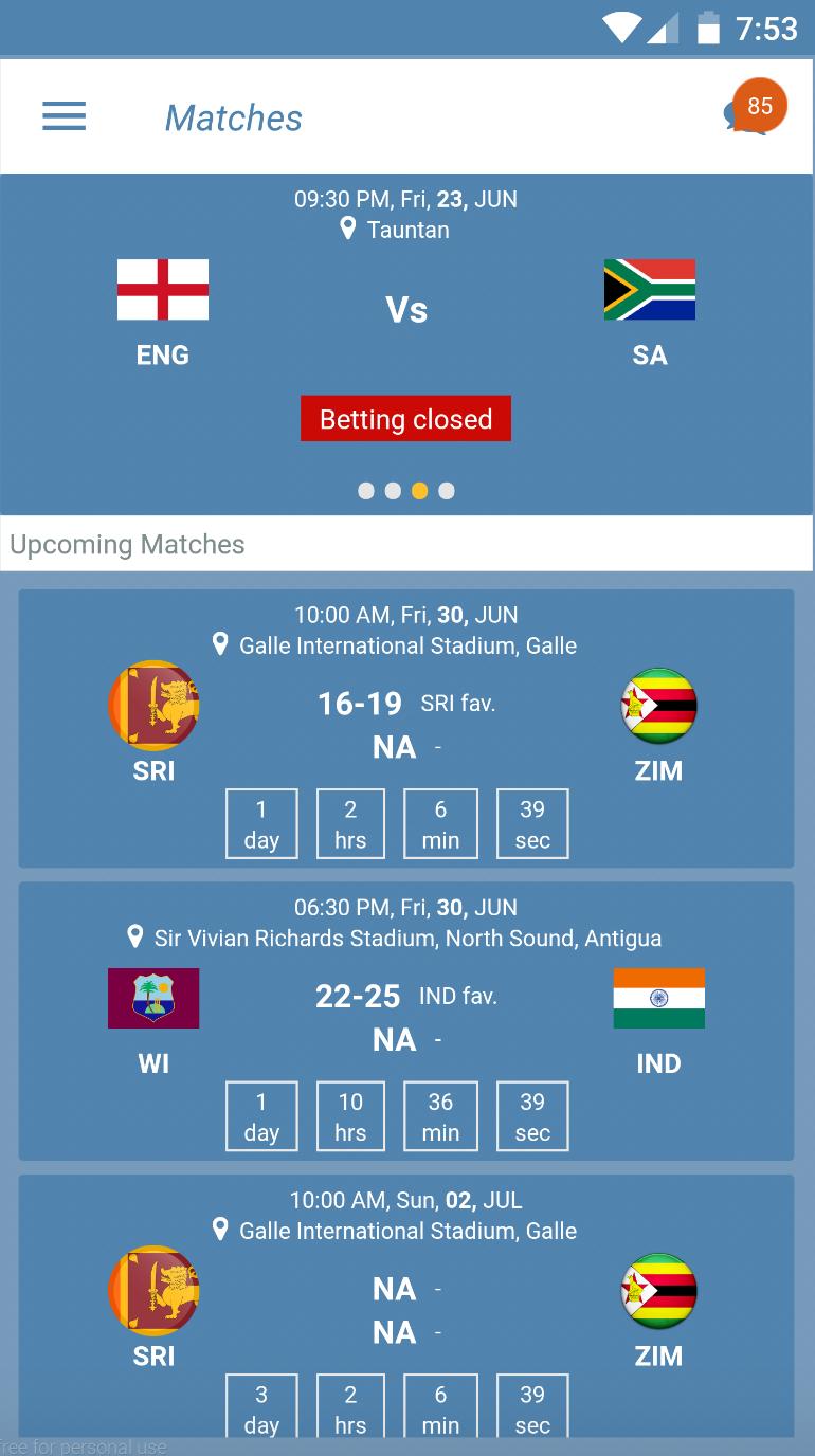 1) . Please note this app does not have any affiliation or linkage to any of the matches it shows .We further state that this app does not provides any copyright / trademark data owned by matches. All the copyright / trademarks are owned by the match governing bodies and respective owners.