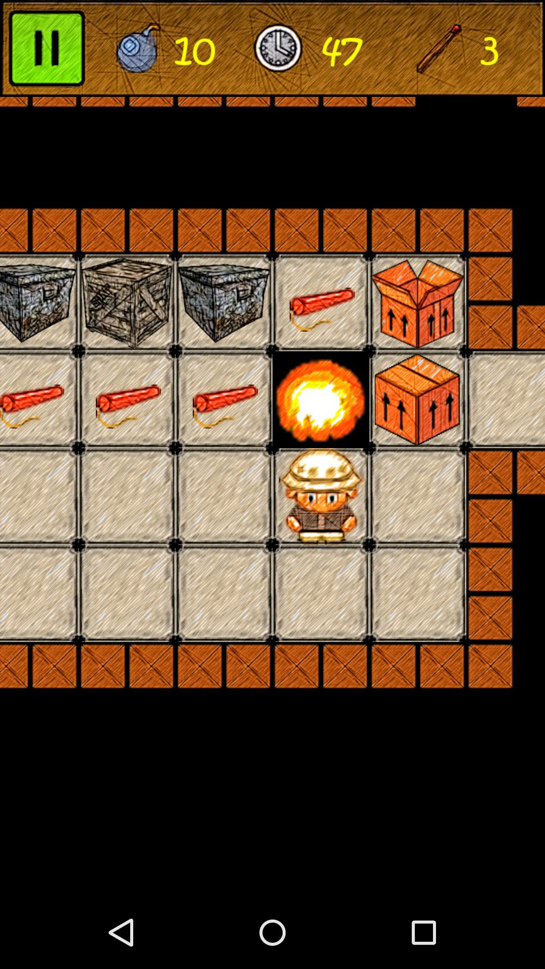 You bomber, your task is to destroy all the bombs on the map, for a limited time and spent the minimum number of matches! Every bomb has its own power and features. And all this in pencil graphics!