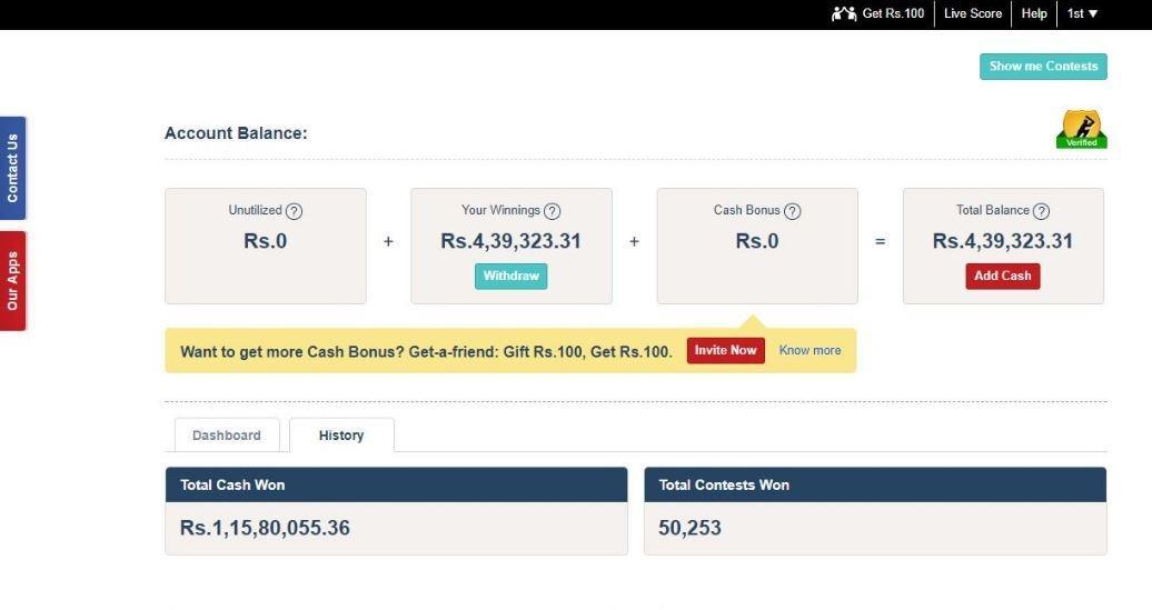 KC has won around 1.5 Crore in Dream11 & many big prizes like Car, bikes etc all around the world.