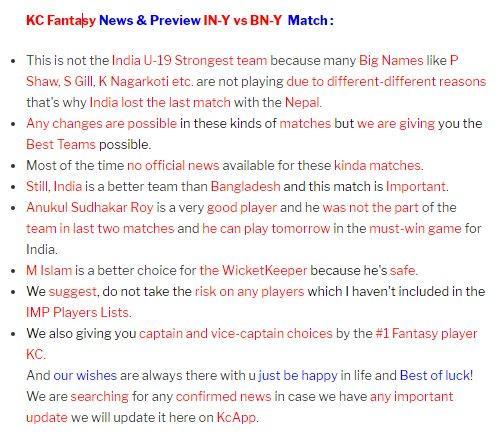 You can use KC tips and news to play on sites like dream11, halaplay,