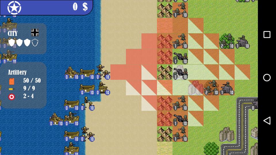 • Ground units : Infantry, Bazooka, Jeep, Truck, Tank, Artillery and Half-Track.