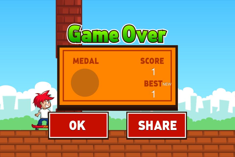 Tap on your device to make the Skater jump. Avoid obstacles to level up. Win fantastic trophies to pimp the Skater up... But most importantly... Smash your friends high score.