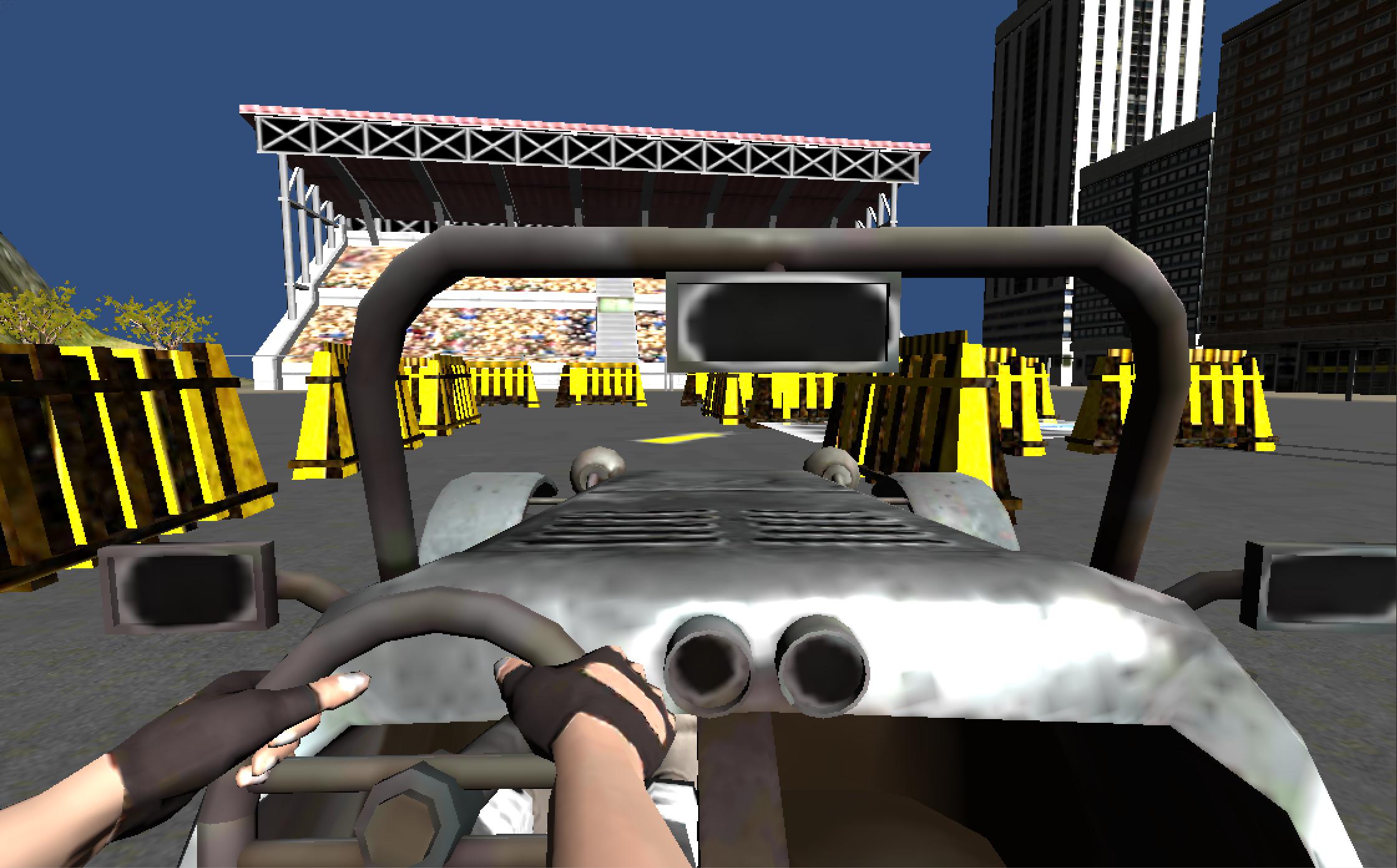 * Control your car with an on-screen steering wheel, acceleration and brake pedals.