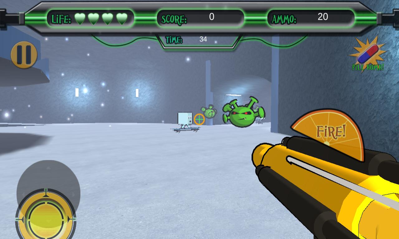Fight the Flu! puts you in the shoes of a white blood-cell tasked with defending the body against the Flu virus and his gang. Use your rapid fire Vitamin-C cannon to shoot your way through 9 unique arenas. Don't let the bright graphics and up-beat music fool you, this first person shooter can deliver a real challenge. Put your aiming skills to the test in 3 unique game modes. Will you be able to destroy these viruses or will you end up getting sick?
