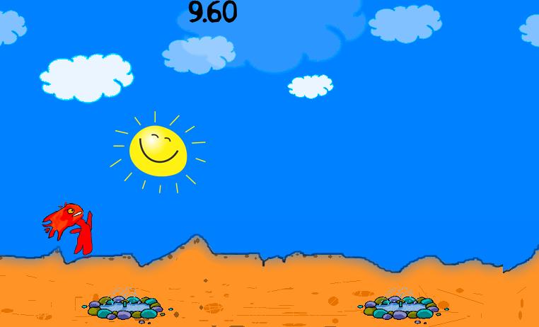 This is the Fire and Water game. You must catch the fire. When you show the water or fountain, JUMP.