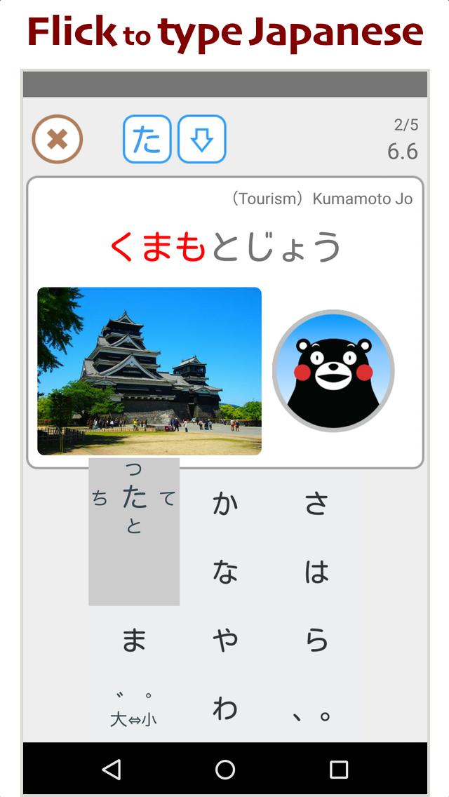 Practice how to type Japanese with the flick input and learn about Kumamoto!
