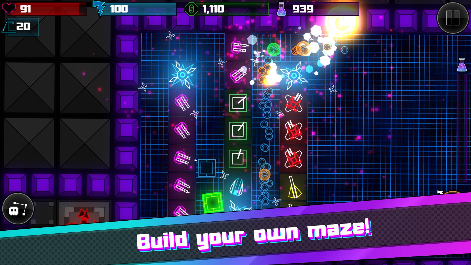 Geometry Defense: Infinite is an indie tower defense game where you must build a maze to slow enemies and build towers to destroy them. An advanced action-packed and difficult tower defense requiring focus to take on challenges and test your skill. Utilize a vast array of tactics to defeat geometric enemies - poison them with goo, melt them with lasers, burn them, zap them, or freeze them!