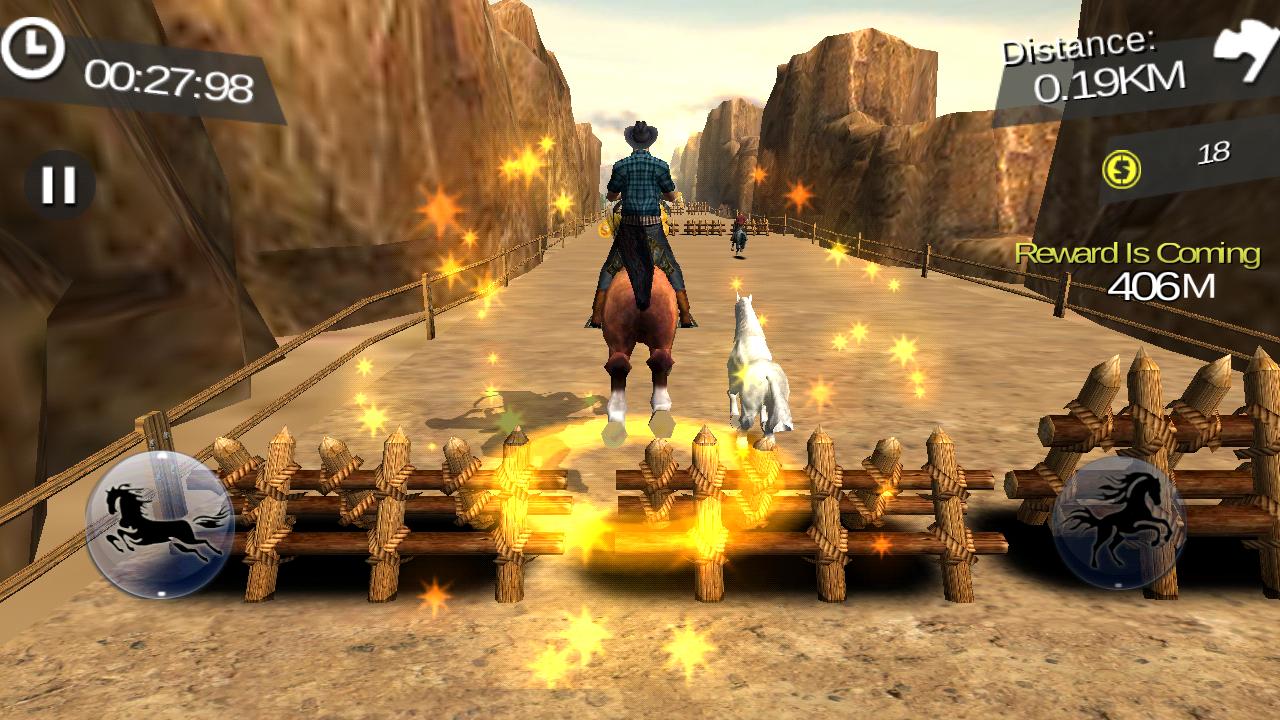 Remember to balance the stamina and speed if horse runs too fast. Before joining the race, train yourself to be a top horse rider, including saddle preparation, stamina handling skills, stunt, surfers and lean on back of your horse.
