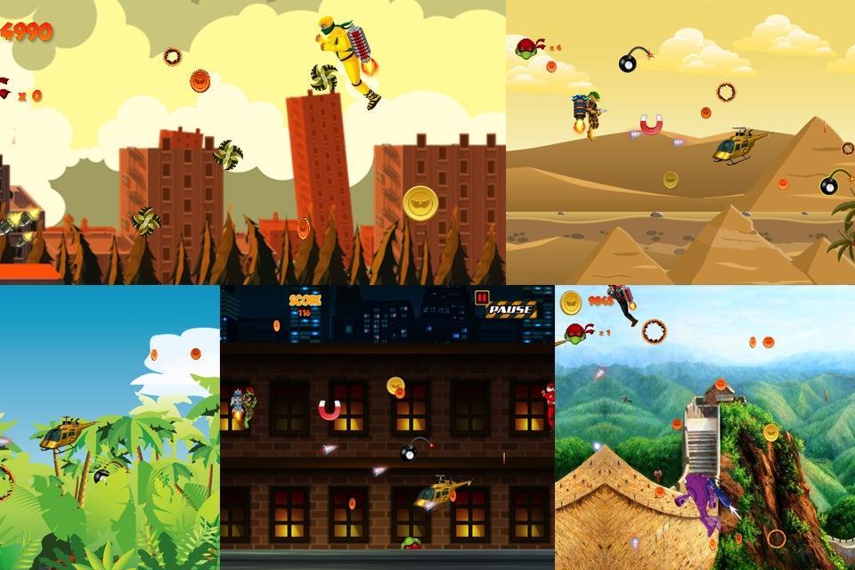 Going the distances doesn't have to be difficult when you're equipped with a jetpack. Race through all the levels, use the ramp to gain that extra distance, and have a showdown against challenging enemies that will put your skills to the test. Be wary, however, even with all the weapons at your disposal, you can still take damage and eventually die if you're not careful.