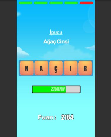 * Word puzzle game from the letters given mixed in the word. Players try to find the word as soon as possible and reach the highest score by using the clue.