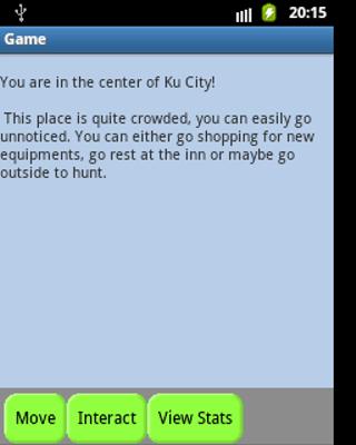 This is a text-base role playing game. You take the role of "Vain" inside a fantasy world, where magic exist but is considered a bad thing. At least that's what people in "Ro" City, the hometown of Vain, believe. In your quest for power in order to protect your hometown, you explore the world of magic, but it's not as cool as it sounds..