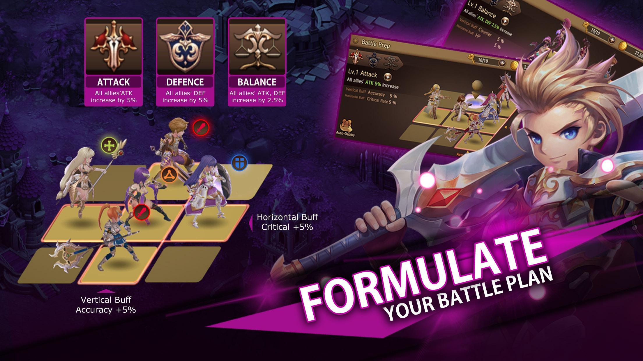• Choose your playstyle between Offensive, Defensive and Balanced, and even select from three different auto-battle modes!