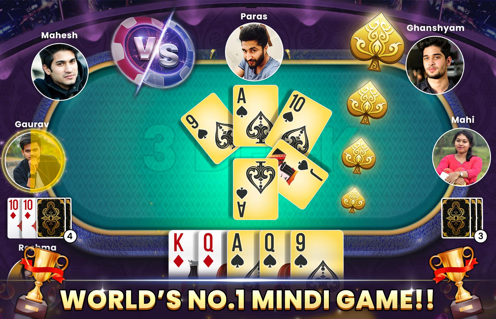 Mindi is Indian card game to be played card table and rummycircle with many plate of mind and aces & kings, thinking a bit is best objective solution on card and table to do card trick on cards deck. Mindi is a fun trick taking card game from India. Mindi is FREE to download!