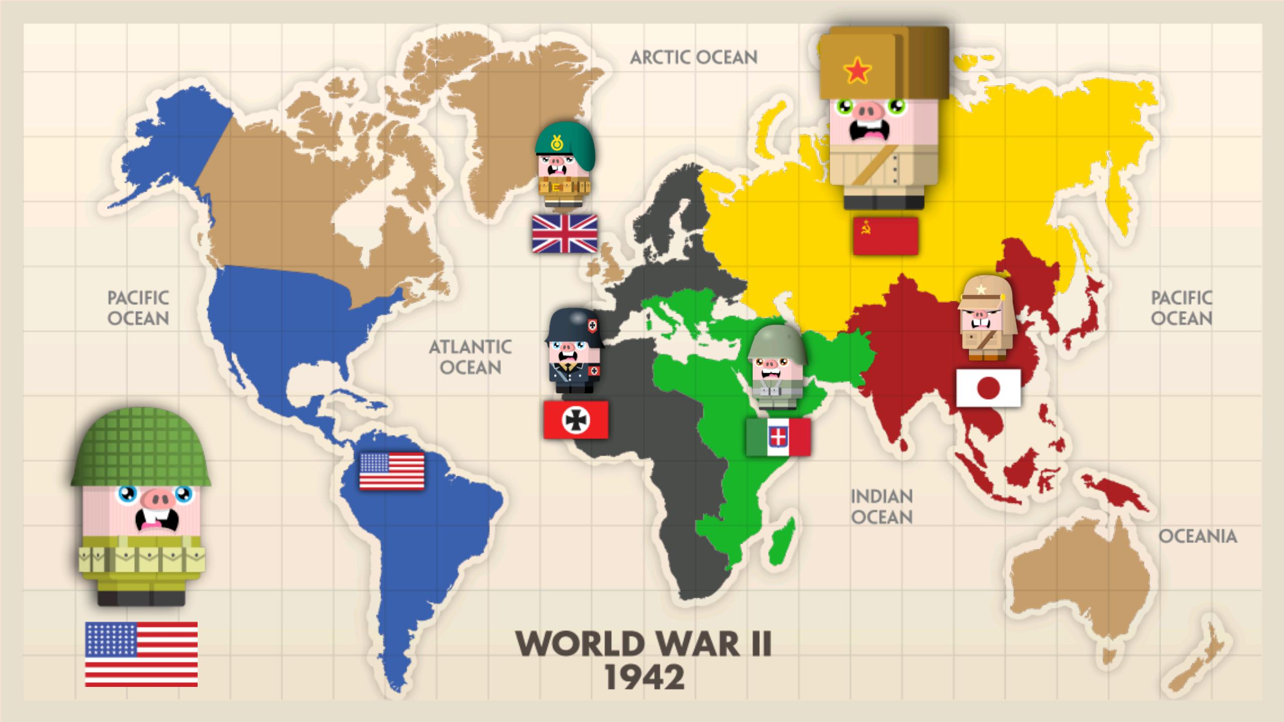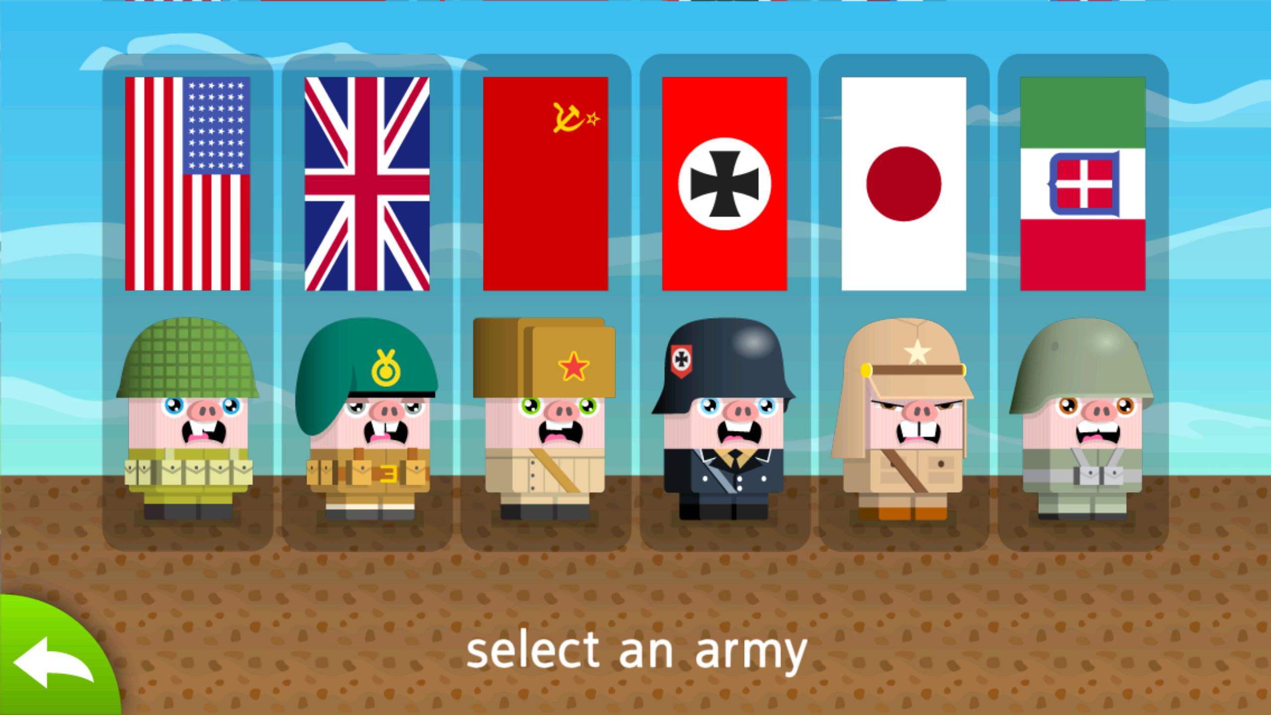 In Mine Swine, command World War II pigs to hide bombs on the battlefield with the goal to explode the enemy army to bacon bits. Battle it out between six different countries; America, Britain, Russia, Germany, Japan, and Italy.