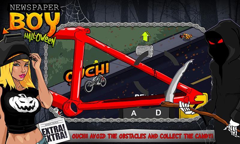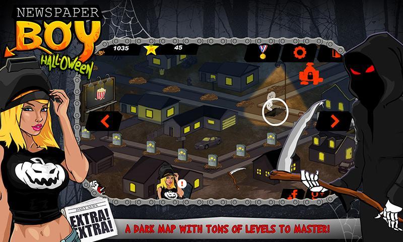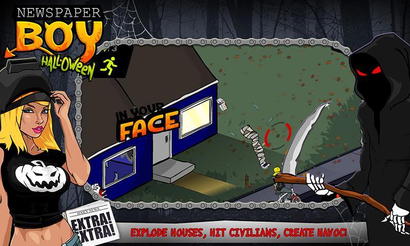 In Newspaper Boy - Halloween Edition you must throw explosive pumpkin heads into neighborhood houses on Halloween night! A free and funny action game with over 100 horror levels to master with candy collecting and 3 star feature. You can buy special upgrades for your bike and share your achievements with your friends.
