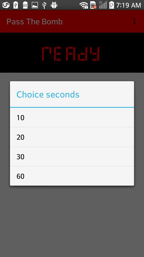Upon receiving pass the bomb, and pass the mobile phone by shaking many times to other people.
