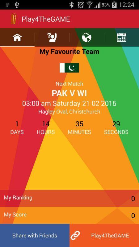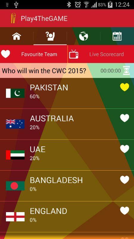 1. You will be asked about your favourite team - the team who will take the World Cup this year. Once answered the question will be locked. Don't worry we will let you change the answer as we progress towards the Final Match (only if something interesting happens - say your team does not make it to the quarter finals - oops!). So think hard before locking your answer.