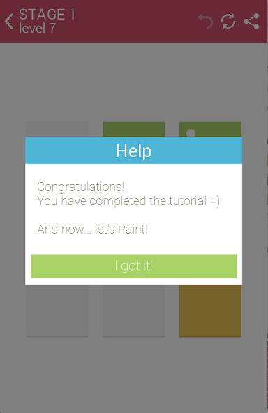Each level has a different target color, indicated by the color of the top bar on the screen.