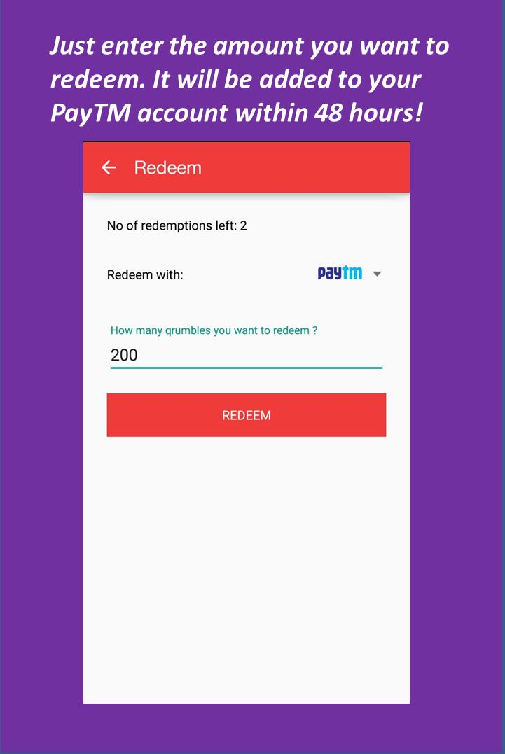 - Redeem Qrumbles as Paytm cash