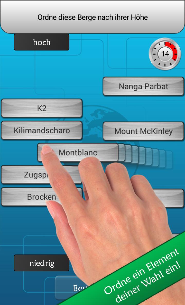Everything about sorting is about sorting in the quiz Ranked . Whether federal states, the national team or actor, there is something for everyone!
