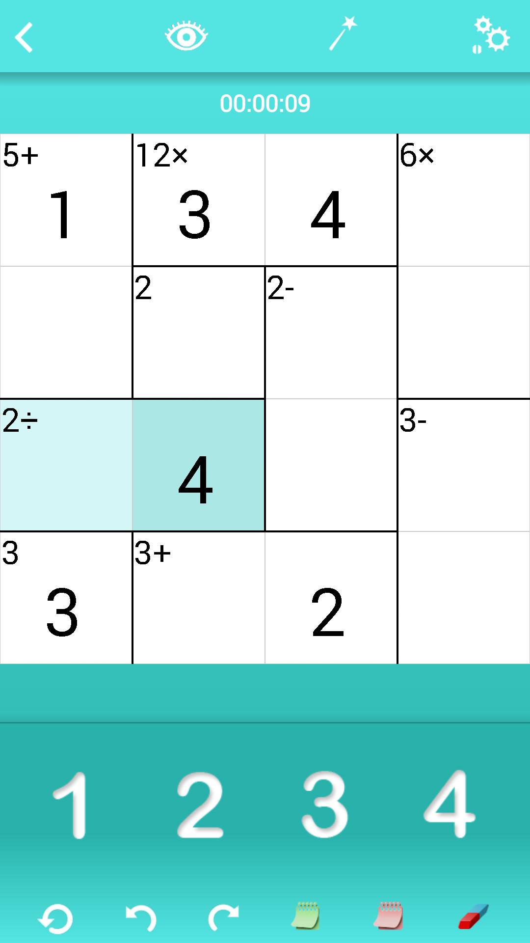 There are virtually unlimited KenKen puzzles available to you on this app. The first 50 are included FREE with the download. If you need more...no problem! Just order them and they'll appear immediately. You select the size, difficulty level, and operations. After you complete a puzzle, a new puzzle of the same type will automatically load so you can continue to challenge yourself.