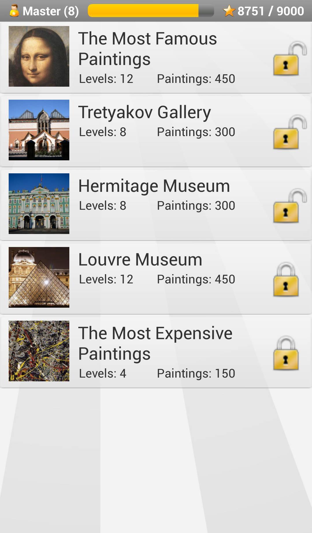 Check and improve your knowledge of famous paintings, enhances the experience and watch your progress. In the form of a game you will meet the great foreign and domestic artists, memorize their world-famous works, learn in which of the public galleries of the world they are represented.