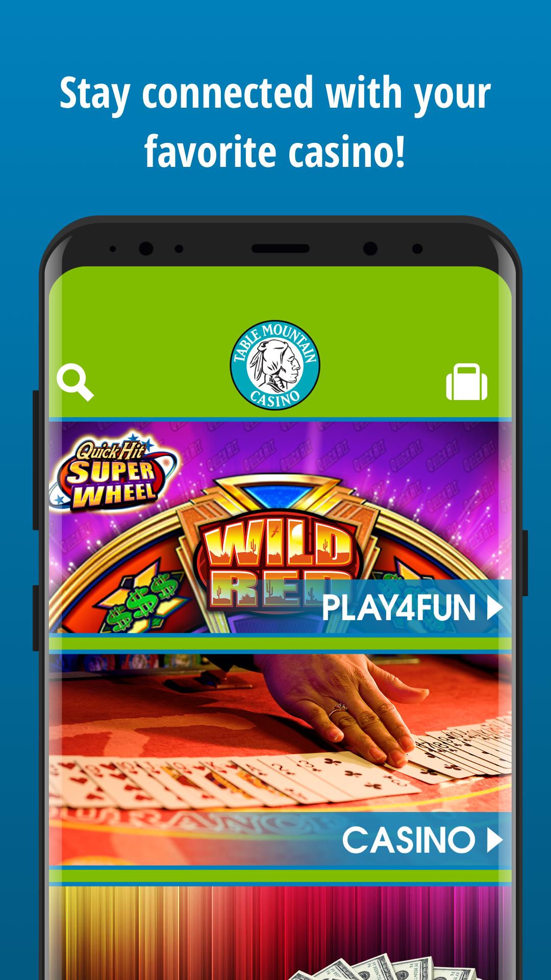 Take Table Mountain Casino with you wherever you go! This application is FREE, fun and allows you instant access to Table Mountain Casino games and information about the property on your smartphone and tablet devices!