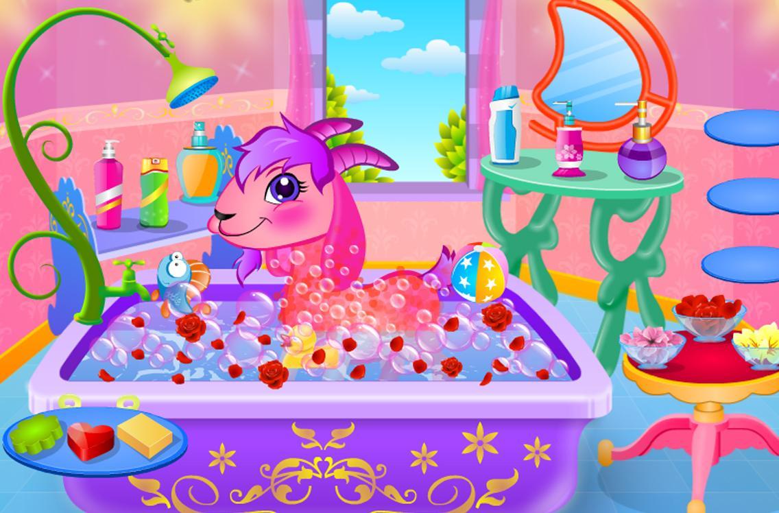 In this baby goat care game, we are going to do a makeover for the cute baby goat. First we help her in the bathing to make her look fresh, get the sponge and clean the little dirty baby goat until the goat looks fresh again! Care games were never this much fun to play! After the bathing it’s time to dry her, put a diaper on, brush her hairs and much more care games gameplay!