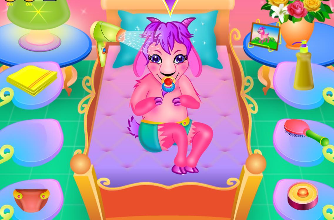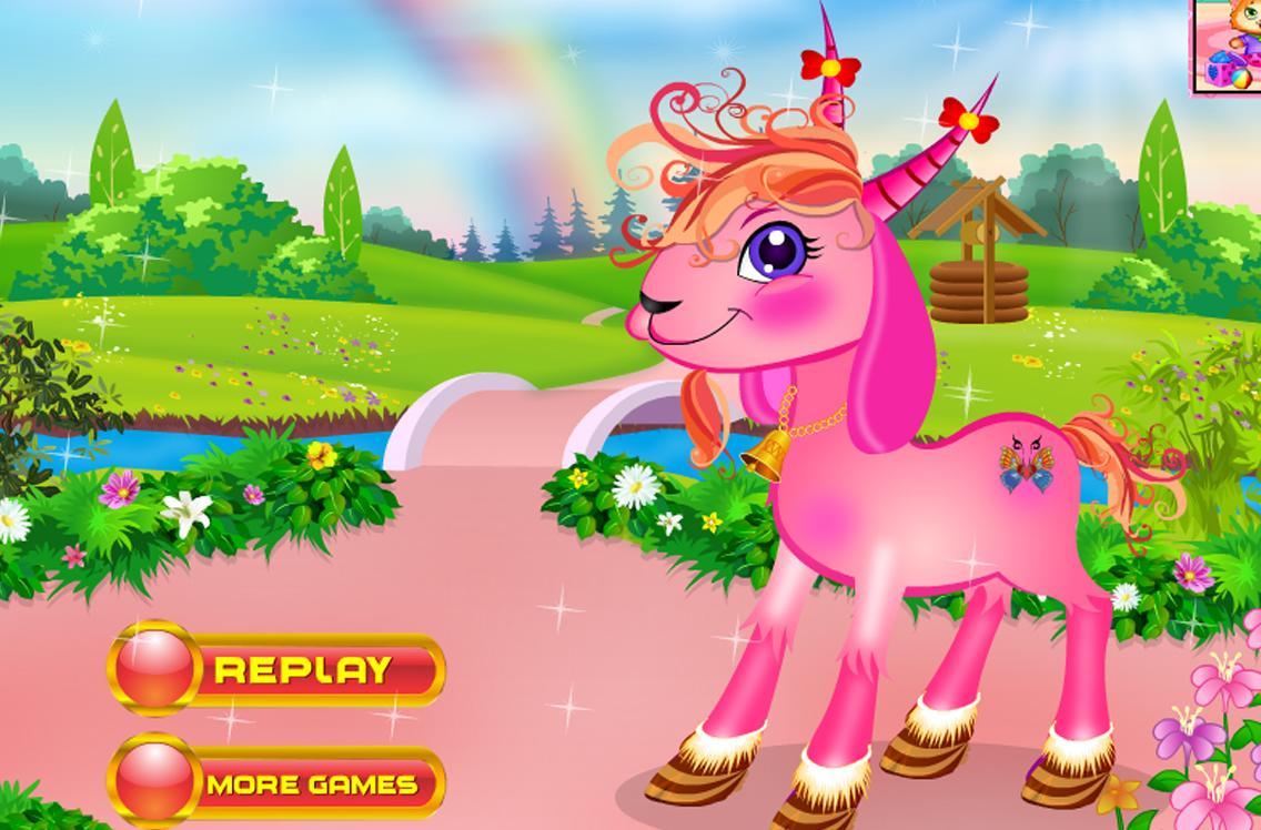 But oh oh, she is really hungry now, can you feed her until she is full? Feed her apples, grass and juice until she is satisfied! Now it’s time for a great makeover games duty, can you make her look beautiful? Color her hairs, tails, paws and horns, or give her a fake care games tattoo!