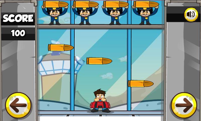 Now, you'd have to move the cursor from left to right as fast as you can to avoid the bullets that fall to your luggage.