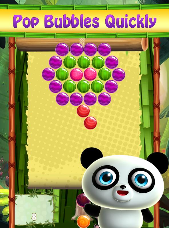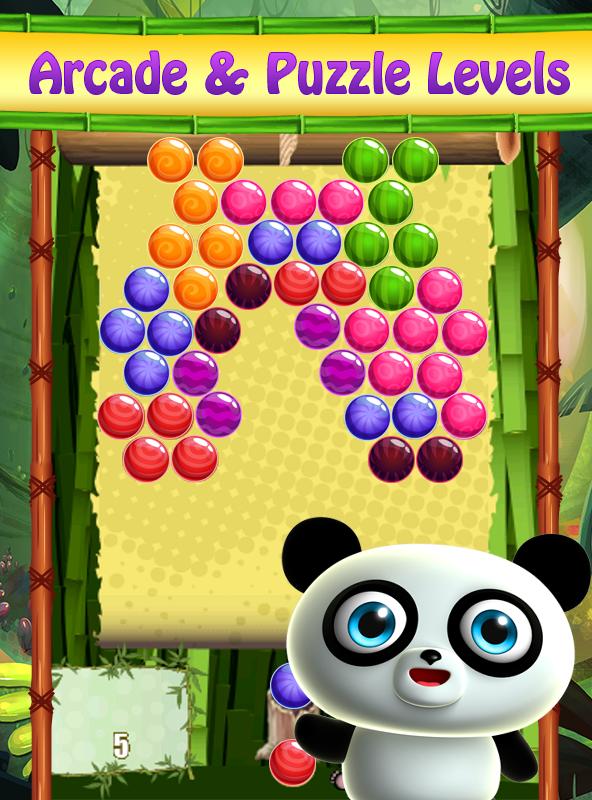 Tiny Panda has two mode: Puzzle and Arcade. You will find hundreds of puzzle and arcade levels. The aim is to shoot all the colorful balls until clearing the board. It is just like match 3 games. There, you don't match the diamonds or jewels but colorful balls. Kids will love this Tiny Panda and can play it easily. Not only kids, but also adults wanting to kill time enjoy with this bubble shooting game.