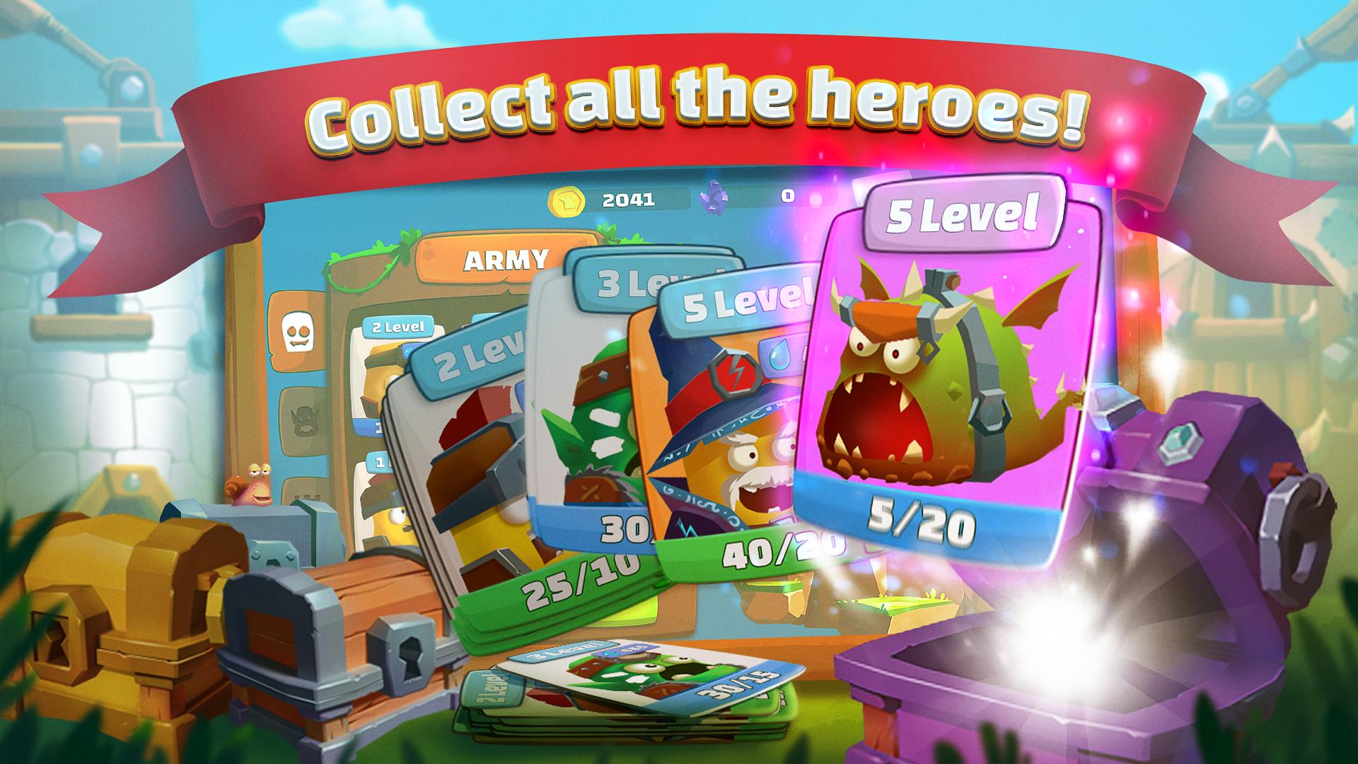 - Unlock and upgrade heroes