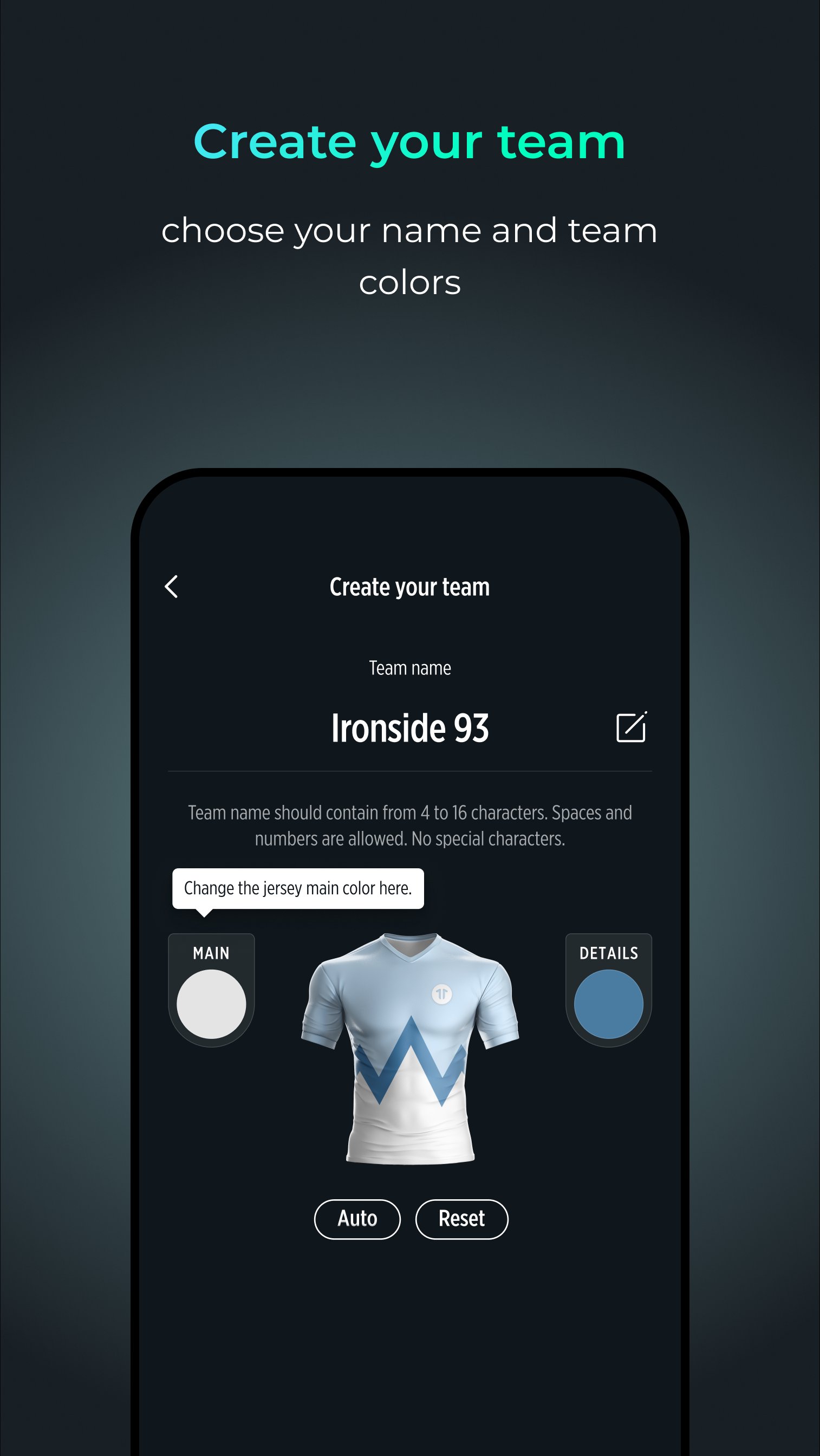 Step 1: Create your team - choose your name and team colors