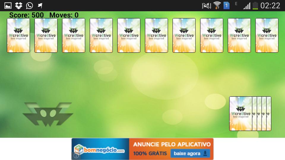 A spider solitaire card game made by Wcre8tive, a popular variant of solitaire.
