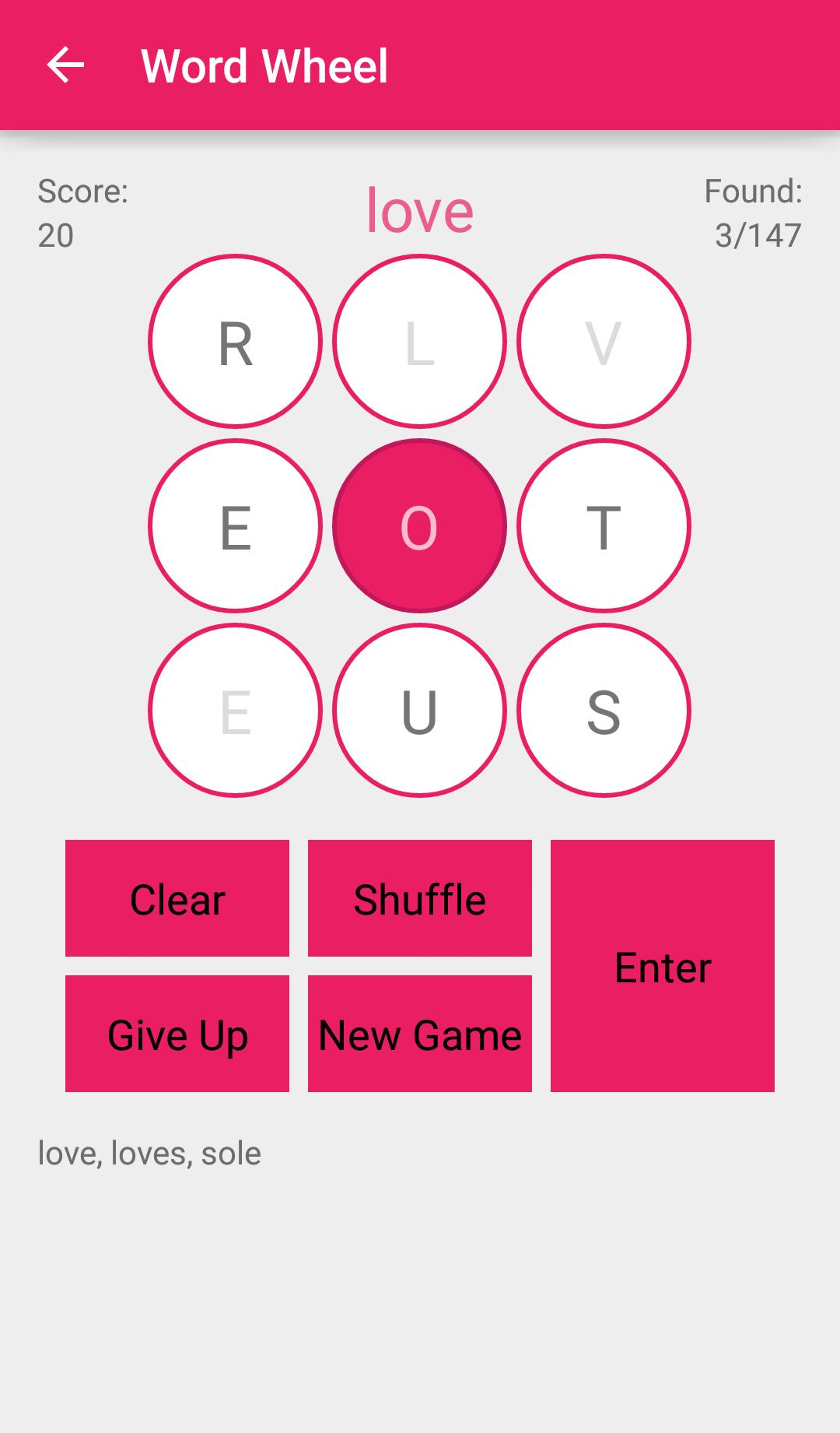 Word Wheel is a simple but challenging game in which you have to find as many words as you can from a nine letter grid. The longer the word the higher the score. Each Word Wheel puzzle has a nine letter word associated with it and finding this word gives you a score bonus. The middle letter must be used in every word and words must be at least four letters long.